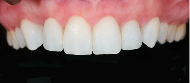 Проблема: В клинику обратился мужчина с жалобами на неправильное положение зубов и смыкание — ряды сходились некорректно, зубы стояли со смещением. При этом было важно, чтобы лечение оставалось незаметным для окружающих, поэтому вариант с брекетами не рассматривался.