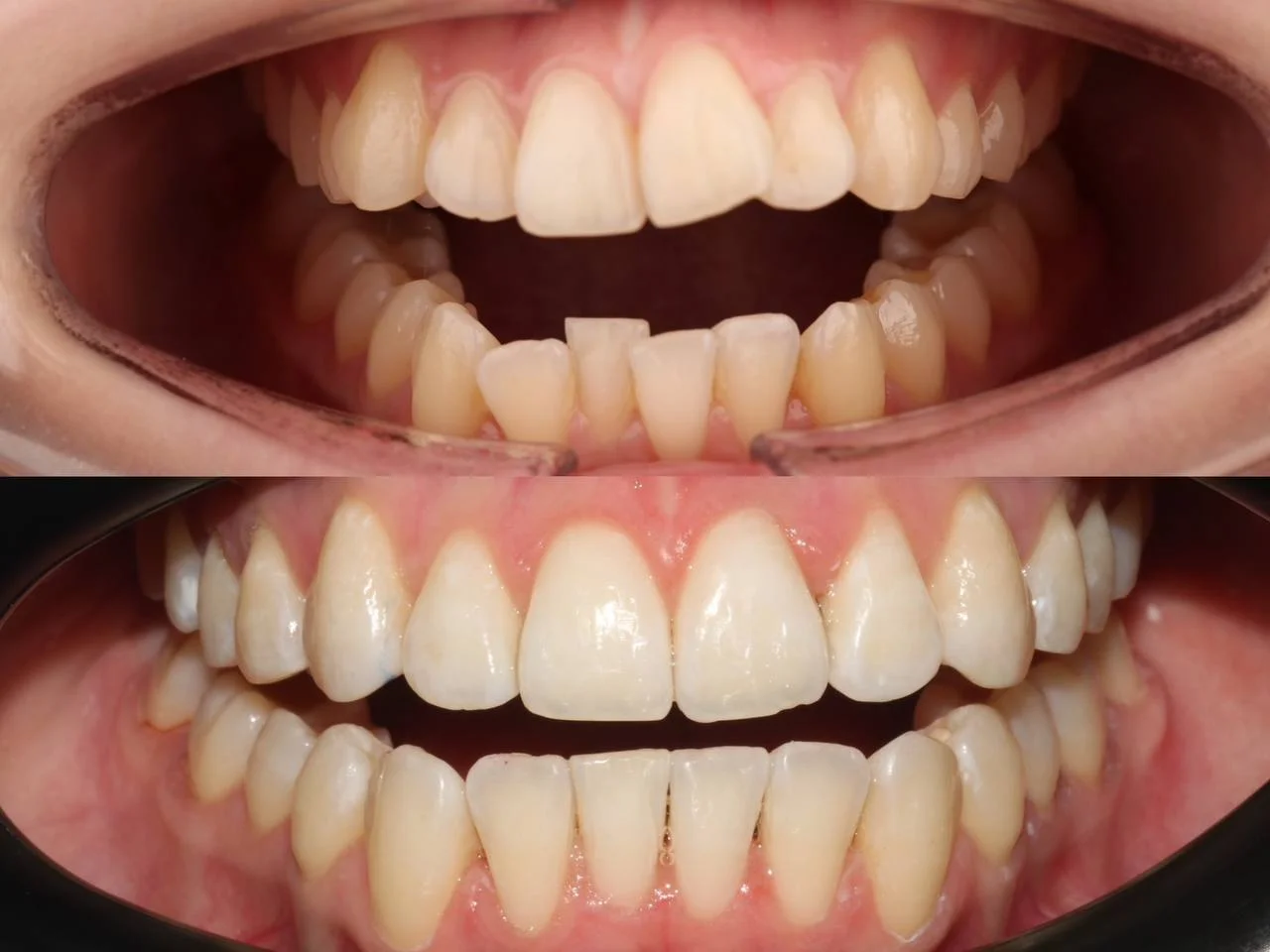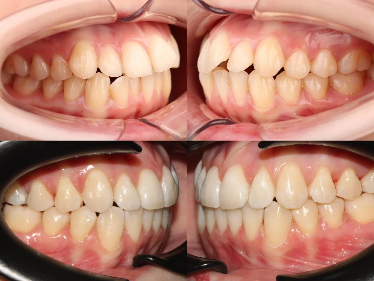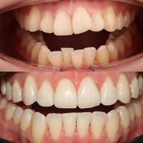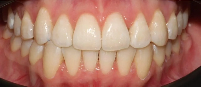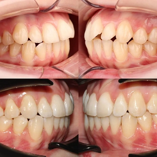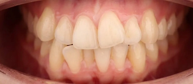 Проблема: Пациентку беспокоило положение зубов и неправильное смыкание челюстей. Зубные ряды сходились некорректно, зубы стояли со смещением — это влияло и на внешний вид, и на распределение нагрузки при жевании.