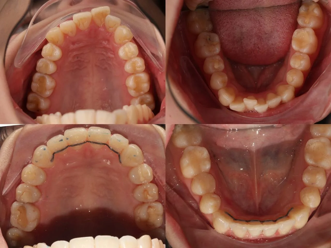 Зубы выровнены, смыкание нормализовано. Установлены несъёмные ретейнеры на обе челюсти, сняты сканы для ретенционных кап.