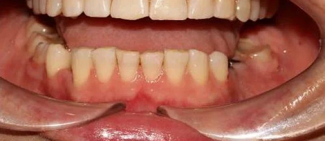 Скученность зубов, обе челюсти сужены — зубам не хватало места в ряду.