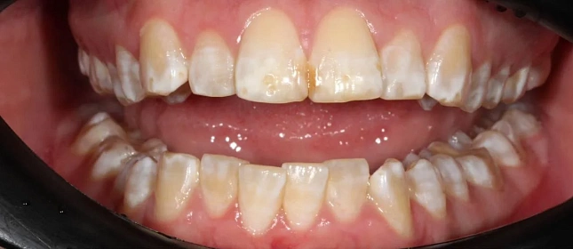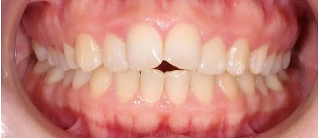 Нарушение соотношения челюстей и неправильное положение зубов — ряды смыкались некорректно, зубы стояли со смещением.