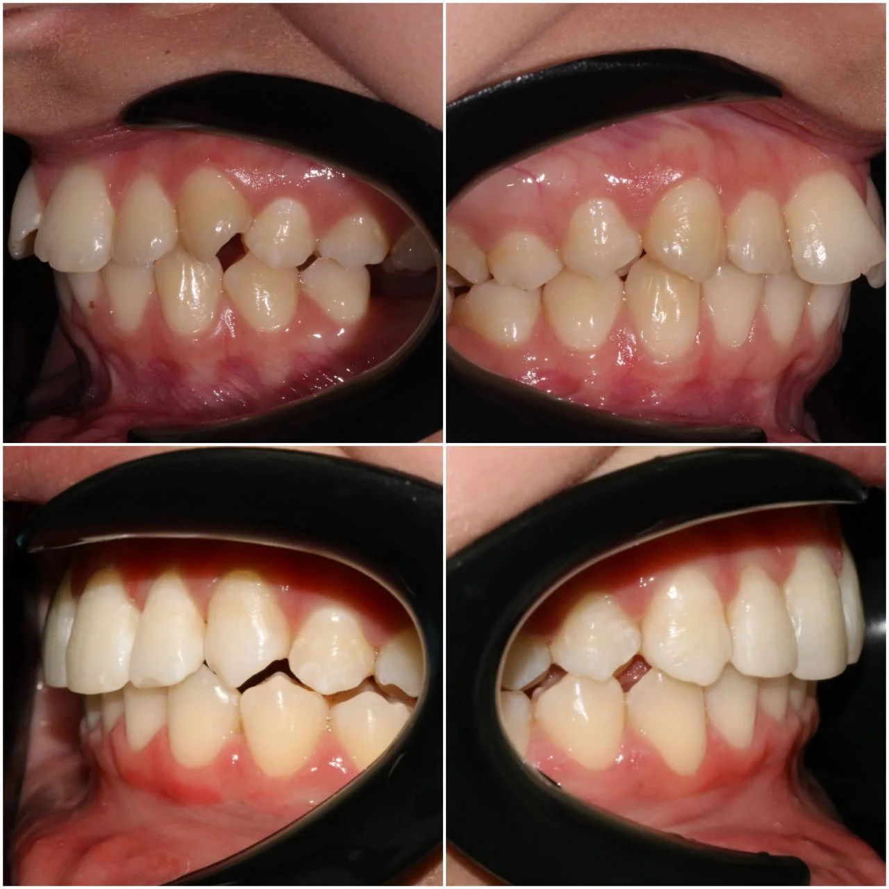 Решение: Поставили элайнеры 3D Smile на обе челюсти. Лечение заняло 4 года и потребовало нескольких последовательных этапов коррекции. Капы менялись каждые 1–2 недели, на контрольных визитах отслеживали прогресс и выдавали новые наборы. Зубы встали в правильное положение, смыкание нормализовалось. Зафиксировали ретейнеры на обе челюсти, изготовили ретенционные капы. Пациентка прошла онлайн-консультацию с ортопедом для оценки дальнейших шагов.