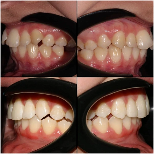 Нарушение соотношения челюстей и неправильное положение зубов — зубные ряды смыкались некорректно, зубы стояли со смещением.