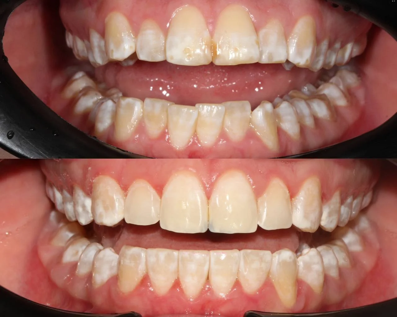 Небольшой по объёму случай — 20 кап в основном наборе. Этого хватило для основного выравнивания, но финальная коррекция смыкания потребовала ещё 10 кап. Предпочитаю доработать, чем оставить компромиссный результат. 30 кап за 23 месяца — спокойный темп, без спешки.