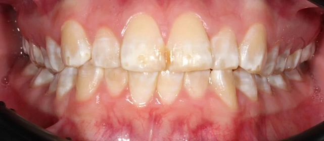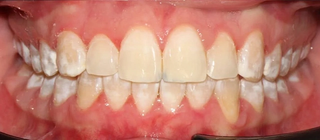 Нарушение соотношения челюстей и неправильное положение зубов — зубные ряды смыкались некорректно, зубы стояли со смещением.