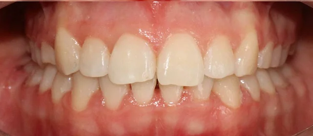Обратилась с жалобой на скученность верхней и нижней челюсти средней степени тяжести — рецидив после подросткового лечения (ретейнер не носила).