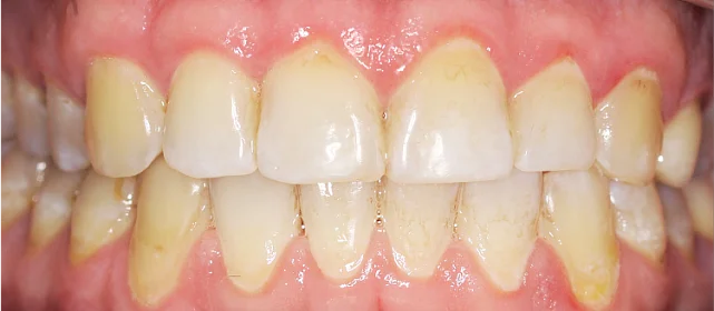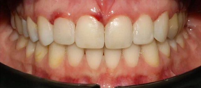 пародонтологическая подготовка (2 визита), профессиональная гигиена, установка Damon Clear на обе челюсти.