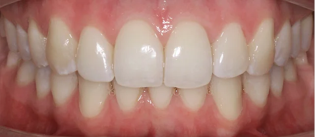 У меня на передних зубах стояли старые коронки, и я думала, что это усложнит лечение. Врач сказала, что элайнеры справятся, просто нужно это учесть в плане. Два дозаказа были, но всё равно уложились быстрее, чем я ожидала — 20 месяцев. Теперь осталось поменять коронки на новые, и всё.