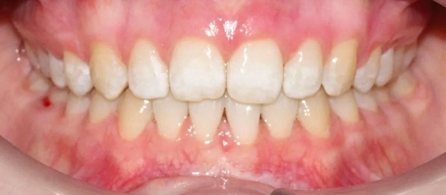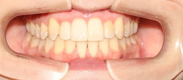 Скученность зубов, обе челюсти сужены — зубам не хватало места в ряду.